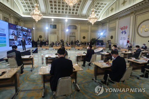 뉴딜펀드 조성방안 보고 받는 문 대통령 |