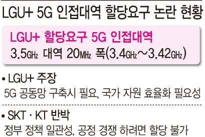 LG유플러스가 과학기술정보통신부에 5G 주파수인 3.5㎓ 대역 20㎒ 폭(3.4㎓~3.42㎓)을 추가로 할당해달라고 요청하면서, 정부가 어떤 결정을 할지 관심이다. ‘국가자원 효율화’냐, ‘공정경쟁이냐’를 두고 정책 결정이 이뤄질 전망이다.