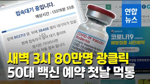 55∼59세 접종 대상자는 352만4천 명에 달하는데 예약 시작과 동시에 신청자가 한꺼번에 몰리면서 서버에 과부하가 걸린 것으로 추정되는데요.