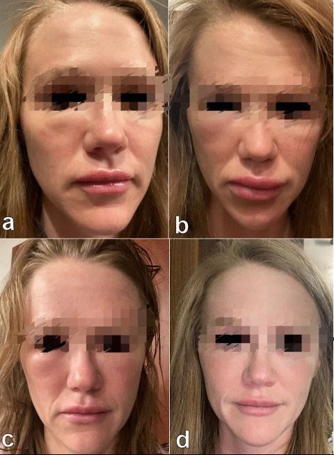 해외에선 미국 웨이크포레스크대 연구팀이 지난 2월 논문을 통해 밝힌 36세 여성 사례를 참고할 수 있다. 이 여성은 지난 2019년 11월 눈 주위와 입술에 필러를 맞았는데 지난 1월 5일 모더나를 접종하고 필러 부위에 부종 증상이 나타났다. 처음 접종 후 12시간 이내에는 근육통과 38도 넘는 고열 등의 일반적인 부작용 증상이 나타나 아세트아미노펜 성분 해열진통제를 복용했다고 한다. 이후로 눈 아래와 입 주위가 붓기 시작해 접종 36시간 지나 항히스타민제인 세티리진 1정(10mg)을 복용했다. 그런데도 48시간 지나면서 눈 아래와 입 주위의 부종 증상이 최고조에 달해 오른쪽 눈은 뜰 수 없는 상태가 됐다. 그때 세티리진을 다시 20mg 투여했다. 이후로도 붓기가 남아있었는데 백신의 면역반응을 무력화시킬 것을 우려해 스테로이드제는 쓰지 않았고, 앤지오텐신 전환 효소(ACE) 억제제인 리시노프릴을 5mg 사용했다고 한다. 그 후론 항히스타민제를 포함해 추가로 쓴 의약품은 없었다. 점차 붓기가 개선되더니 접종 72시간쯤 지나자 정상으로 돌아왔다고 한다.