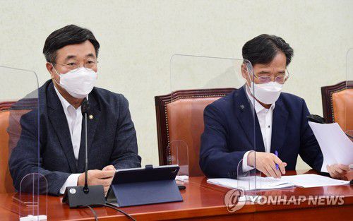(서울=연합뉴스) 강병철 기자 = 더불어민주당 윤호중 원내대표는 13일 국민의힘이 전국민 재난지원금 합의를 사실상 번복한 것과 관련, "이준석 대표와 국민의힘의 책임 있는 자세를 촉구한다"고 말했다.