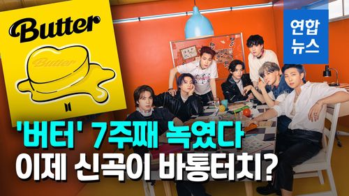 (서울=연합뉴스) 그룹 방탄소년단(BTS)의 두 번째 영어 신곡 '버터'(Butter)가 빌보드 싱글 차트에서 7주 연속 정상을 차지하는 기염을 토했습니다.