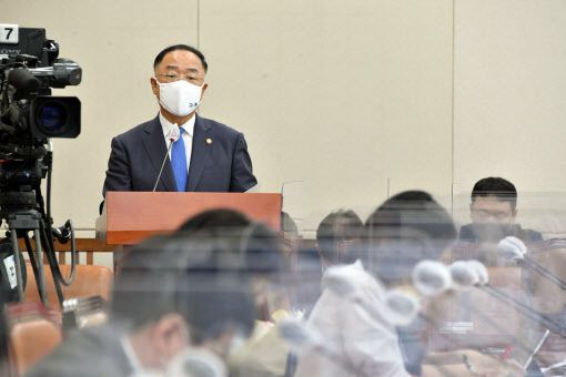 홍남기 경제부총리 겸 기획재정부 장관이 13일 서울 여의도 국회에서 열린 기획재정위 전체회의에서 2차 추경 관련 설명을 하고 있다. (사진=이데일리 노진환 기자) |