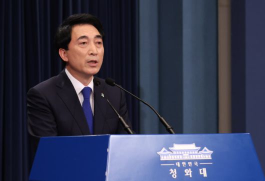 박수현 국민소통수석이 10일 오후 청와대 춘추관 대브리핑룸에서 인사 관련 브리핑을 하고 있다.(사진=연합뉴스) |