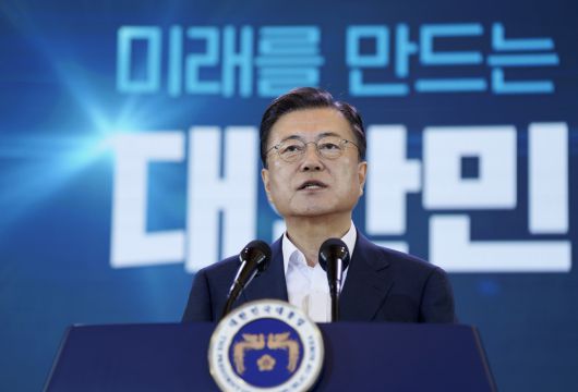 문재인 대통령이 14일 오전 청와대에서 열린 제4차 한국판 뉴딜 전략회의에서 발언하고 있다. [연합] |