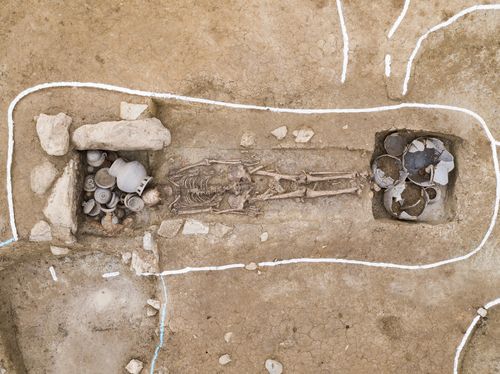 목곽묘(木槨墓·덧널무덤) 2호로 명명한 무덤에서 출현한 인골은 출토 당시 키가 대략 175㎝로 측정됐다. 하지만 턱이 가슴 쪽을 향하도록 당겨진 상태여서 실제 신장은 더 컸을 것으로 분석됐다.