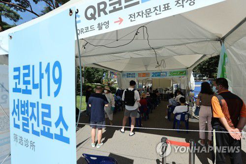 선별진료소 대기하는 시민들 |