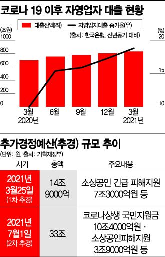 하지만 코로나 4차 대유행이 본격화되면 자영업자 등 취약계층을 중심으로 피해는 더욱 커질 전망이다. 한은에 따르면 올해 3월 말 기준 국내 자영업자의 대출 잔액은 831조8000억원에 달한다. 지난해 6월 15.4%였던 자영업자 대출 증가율은 올해 3월 18.8%로, 3.4%포인트나 올랐다. 내년도 최저임금이 5%(440원) 인상된 것도 부담이다. 사회적 거리 두기 강화 조치로 인한 자영업자의 매출 피해가 우려되는 상황에서, 최저임금 인상은 경영난을 가중시키는 요인으로 작용할 전망이다.