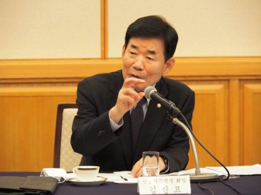 한·일 의원연맹 김진표 회장(더불어민주당)이 15일 도쿄 지요다구 데이코쿠호텔에서 한국 특파원과 간담회를 갖고, 한·일 관계 개선을 위한 양국 의회외교 활동에 대해 설명하고 있다. |