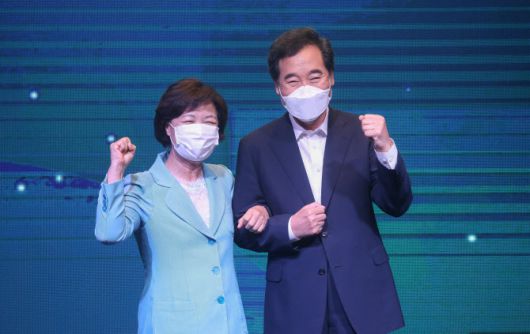 더불어민주당 대선 주자인 이낙연 전 대표(오른쪽)와 추미애 전 법무부 장관이 지난 1일 서울 여의도 글래드호텔에서 열린 공명선거·성평등 실천 서약식 및 국민면접 프레스데이 사전행사인 ‘너 나와’에서 함께 기념촬영을 하고 있다 (사진=연합뉴스) |
