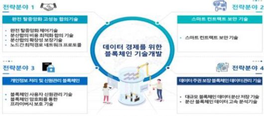 한편, 과기정통부는 2021~2025년 디지털 뉴딜을 위한 블록체인 기술개발 사업 예산으로 총 1133억원을 책정했다. 국비 916억원, 민자 217억원이 투입된다. 합의기술, 스마트컨트랙트 보안기술, 개인정보 처리 및 신원관리기술, 데이터 관리 기술 등 4대 분야 9개 과제를 추진한다.