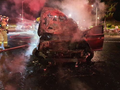 사고 당시 귀가하던 목격자가 엔진룸에서 연기와 불꽃이 치솟는 사고 차량을 보고 119에 신고했다. 소방당국은 오후 10시 44분께 도착해 진화에 나섰지만, 승용차는 완전히 불에 탔다.