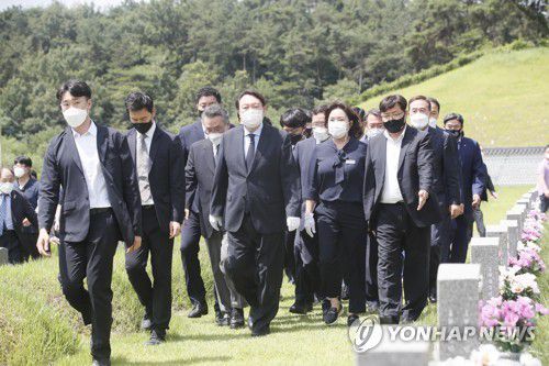 이어 "오래전 광주에서 근무하던 시절 참배한 이후 정말 오랜만에 왔다"라며 "오늘 이곳에 오면서 이제 광주의 한을 자유민주주의와 경제번영으로 승화시켜야 한다고 생각했다"라고 강조했다.