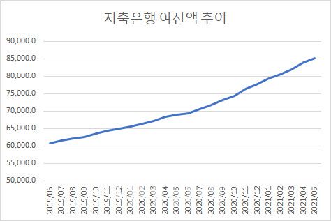 자료 : 한국은행 경제통계시스템18일 한국은행 경제통계시스템에 따르면 5월말 기준 국내 저축은행의 여신 잔액은 85조1114억원으로 집계됐다. 2020년 12월말 대비 7조4439억원 늘어난 액수다.