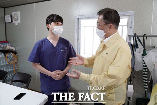 박 대변인에 따르면 문 대통령은 이번 현장 방문에서 "의료진들이 땀범벅이 된 모습을 보면 정말로 안쓰럽고 가슴이 아프다"며 "아쉬운 점이 있으면 무엇이든지 말해 달라"고 물었다.