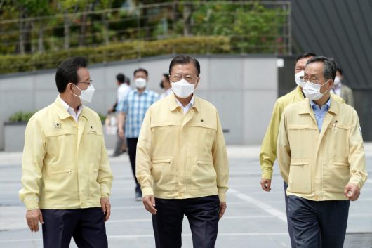 문재인 대통령이 18일 서울 강남구 삼성역 인근 코로나19 임시선별검사소 현장을 방문, 의료진을 격려했다. 문 대통령은 이 자리에서 “의료진이 땀범벅이 된 모습을 보면 정말로 안쓰럽고 가슴 아프다”고 말했다. 한편 이날 0시 기준 코로나19 신규확진자수는 1455명으로 주말기준 가장 많은 수를 기록했다. <연합뉴스> [Copyright © 전자신문. 무단전재-재배포금지]
