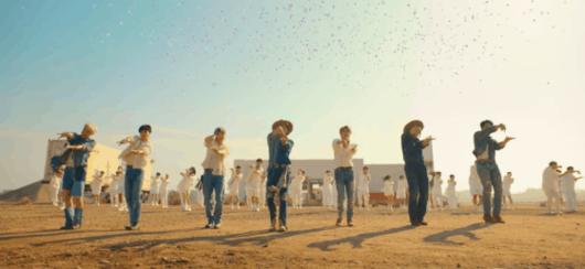 유튜브 조회수 1억 뷰를 넘긴 방탄소년단 ‘퍼미션 투 댄스’ 뮤비. 인천 영종도 을왕산에서 촬영한 장면이다. 사진 빅히트 뮤직 |