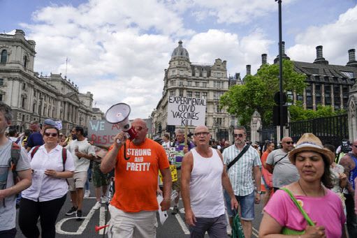 영국 런던의 웨스트민스터궁 앞에서 열린 코로나19 봉쇄 해제 연기에 대한 항의 시위. (사진=AP 뉴시스) |