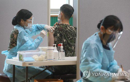 (서울=연합뉴스) 유현민 정빛나 기자 = 신종 코로나바이러스 감염증(코로나19) 아스트라제네카(AZ) 백신으로 1차 접종을 한 30세 이상 장병들이 19일부터 화이자 백신으로 2차 접종을 한다.