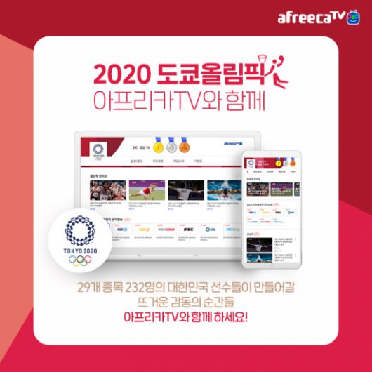 시청자들을 위한 이벤트도 마련된다. 아프리카TV에서 진행되는 올림픽 공식 방송 시청 인증 이벤트, 대한민국 대표팀 올림픽 최종 순위 맞추기, 최종 획득 금메달 개수 맞추기, 구기 종목(축구·야구·배구·핸드볼) 승부 예측 이벤트 등 풍성한 이벤트를 선보일 예정이다.