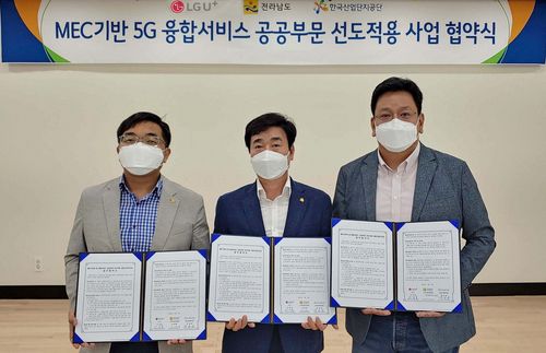 (서울=연합뉴스) 조성흠 기자 = LG유플러스[032640]는 20일 전남도청, 한국산업단지공단 전남지역본부와 '멀티액세스엣지컴퓨팅(MEC) 기반 5G 융합서비스 공공부문 선도적용 사업 협약'을 맺었다고 밝혔다.