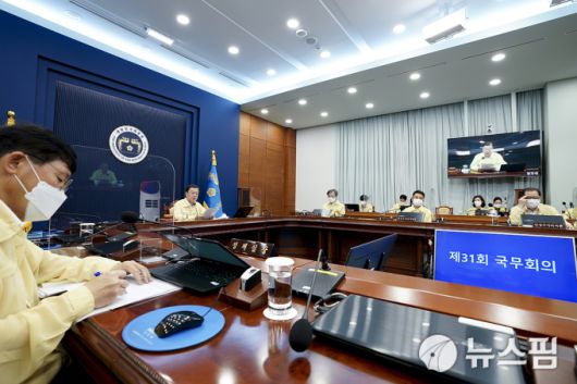 [서울=뉴스핌] 이영섭 기자 = 문재인 대통령이 청와대에서 국무회의를 주재하고 있다. [사진=청와대] 2021.07.20 nevermind@newspim.com |