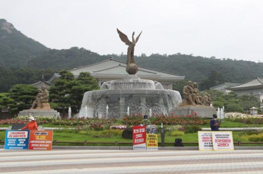 청와대 앞 1인 시위 (서울=연합뉴스) 임병식 기자 = 12일 서울 청와대 앞 분수광장에서 사회적 거리두기를 유지한 채 1인 시위가 진행되고 있다. 이날부터 25일까지 수도권 전체에 '사회적 거리두기' 4단계가 적용되면서 1인 시위를 제외한 집회가 금지된다. 2021.7.12 andphotodo@yna.co.kr/2021-07-12 11:51:26/ <저작권자 ⓒ 1980-2021 ㈜연합뉴스. 무단 전재 재배포 금지.> |