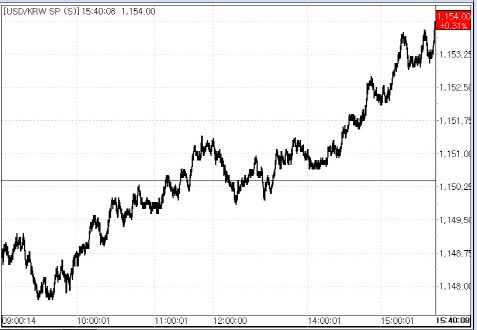 21일 서울외국환중개에 따르면 원·달러 환율은 이날 1140원대로 소폭 하락 출발했지만 오전 중 1150원대로 오르면서 상승 반전해 상승폭을 키웠다. 장중, 종가 기준 모두 전일 대비 3.60원 오른 1154.00원을 기록하면서 3거래일 연속 상승 마감했다.