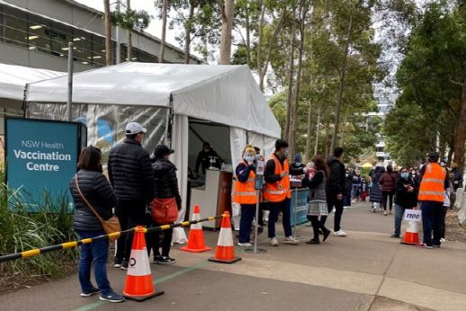 지난 14일(현지시각) 호주 시드니 시민들이 코로나19 백신 예방접종센터 앞에 줄을 선 모습. (사진=로이터) |