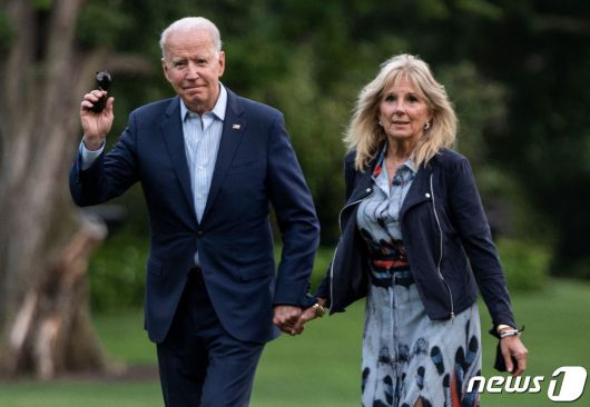 조 바이든 미국 대통령과 부인 질 바이든 여사가 18일(현지시간) 캠프 데이비드에서 주말을 보낸 뒤 워싱턴 백악관에 도착을 하고 있다. © AFP=뉴스1 © News1 우동명 기자 |