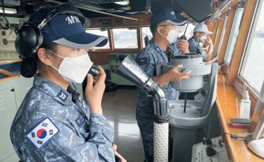 문무대왕함 9월 한국 도착 - 코로나 집단감염이 발생한 청해부대 문무대왕함을 국내로 이송하기 위해 출국한 특수임무단이 21일 문무대왕함에서 점검하고 있다. 문무대왕함이 국내로 귀환하는 데는 평시 항속(航速)으로 50일 정도 걸릴 것으로 예상된다. /국방부 |