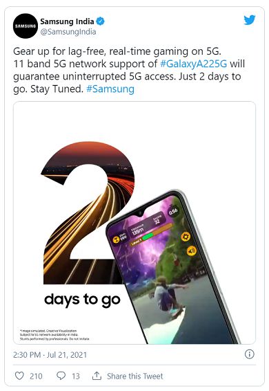 21일(현지시간) 삼성전자 인도법인에 따르면 삼성전자는 오는 23일(현지시간) 인도에서 ‘갤럭시A22 5G’를 출시한다.