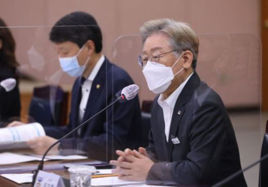 이재명 경기도지사가 지난 20일 오후 경기도청 제1회의실에서 열린 '2021 더불어민주당 경기도 예산정책협의회'에서 인사말을 하고 있다. [이미지출처=연합뉴스] |