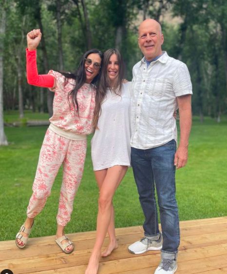 함께 공개한 사진 속에는 데미 무어가 스카우트 라루, 브루스 윌리스와 함께 야외에서 나란히 서 포즈를 취하고 있다. 환하게 웃는 얼굴들에서 행복감이 느껴진다.