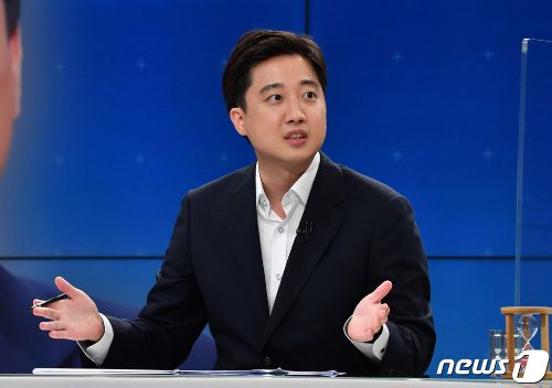 (서울=뉴스1) 국회사진취재단 = 이준석 국민의힘 대표가 21일 목동 SBS에서 열린 여야 당 대표 토론 배틀에서 발언하고 있다. 2021.7.21/뉴스1 |
