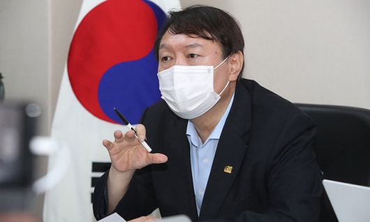 야권 대선 주자인 윤석열 전 검찰총장이 지난 20일 대구 중구 서문시장 상가연합회 사무실에서 지역 기자들과 간담회를 하고 있다. 연합뉴스 |