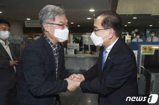 이날 의원회관 9층을 방문한 최 전 원장은 먼저 태 의원을 만나 인사를 나눈 후 차례로 의원실을 순회하며 스킨십을 가졌다. 최 전 원장은 "2012년 겨울쯤 북한에서 탈출했다 중국 공안에 잡혀 끌려갈 때 북송을 다시 해선 안 된다면서 제가 촛불도 들고 그랬다"며 "제가 그 당시 공무원이었지만 정치적 집회가 아니라 인권 문제였기 때문에 몇 번 참여했다"고 태 의원과의 인연을 설명했다.