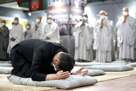 문 대통령은 “불교계가 코로나 상황에서 법회를 멈추고 방역에 적극적으로 협조해 주시고 모범적으로 대응해 주셔서 감사하다”고 말했다.