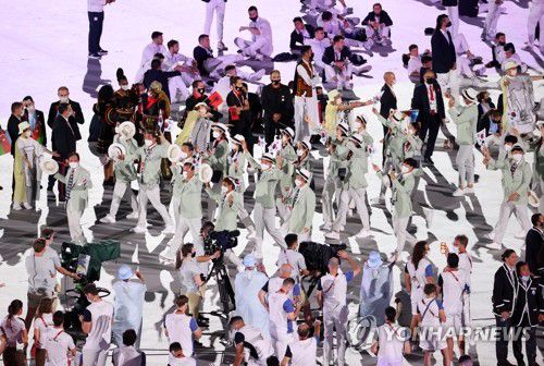 대한민국 선수단은 23일 일본 도쿄 올림픽 스타디움(신국립경기장)에서 막을 올린 개회식에서 일본어로 표기하는 국가 순서에 따라 태국에 이어 103번째로 경기장에 들어와 행진했다.