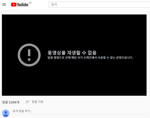 현재 해당 파일의 유튜브 주소에 접속하면 '법원 명령으로 인해 해당 국가 도메인에서 사용할 수 없는 콘텐츠'라는 안내가 나온다.