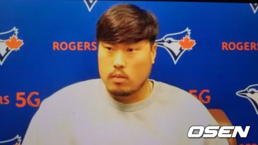 [사진]토론토 블루제이스의 류현진이 25일(한국시간) 시티 필드에서 벌어진 뉴욕 메츠와의 원정 경기를 마친 뒤 화상 인터뷰를 진행하고 있다. <토론토 블루제이스 구단 제공 영상 캡처> |