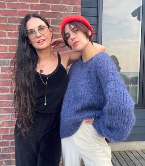 이와 함께 공개한 사진 속에서 데미 무어는 편안해보이는 블랙 의상을 입은 채 스웨터 패션으로 게성을 뽐내는 딸 탈룰라 윌리스와 함께 포즈를 취하고 있다. 데미 무어는 허벅지까지 내려오는 긴 머리에 파마를 한 모습이다.