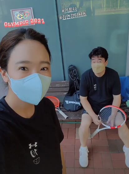 공개된 사진 속 부부는 배구 선구 김연경 이름이 영어로 적힌 티셔츠를 맞춰 입고 운동을 나온 모습. 무더운 날씨에도 마스크를 쓰고 부지런히 운동하는 모습이 눈길을 끌었다.