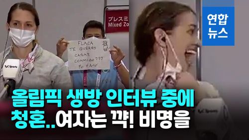 (서울=연합뉴스) 아르헨티나 여자 펜싱 선수가 경기 패배 후 생방송 인터뷰 중에 17년 사귄 남자친구 겸 코치로부터 깜짝 청혼을 받았습니다.