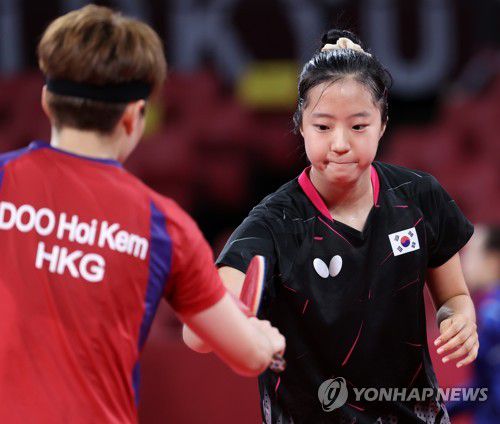 신유빈은 27일 일본 도쿄체육관에서 열린 대회 여자 단식 3회전(32강)에서 홍콩의 두호이켐에 2-4(10-12 5-11 11-8 11-8 4-11 6-11)로 무릎을 꿇었다.