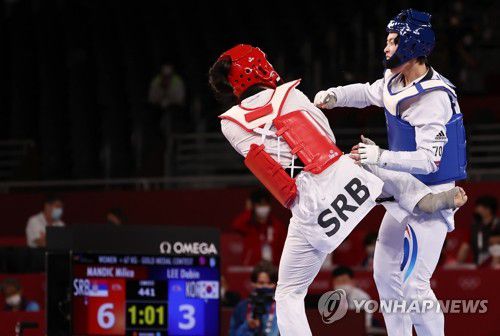 이다빈(서울시청)은 이날 일본 지바 마쿠하리 메세 A홀에서 열린 세르비아의 만디치와의 결승전에서 7-10으로 져 준우승했다. 이로써 한국 태권도 대표팀은 처음으로 금메달을 획득하지 못한 채 올림픽을 마무리하게 됐다.