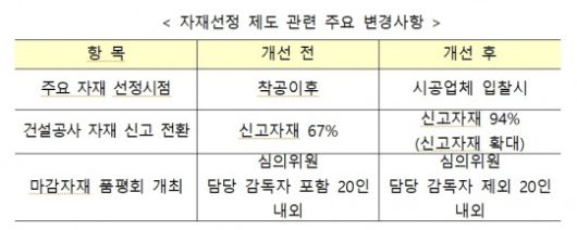 자재선정 제도 관련 주요 변경사항. / 자료=LH |