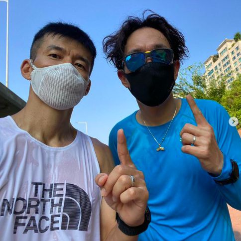 [OSEN=김사라 기자] 가수 션이 방송인 장성규와 함께 '기부런' 인증 사진을 공개했다.