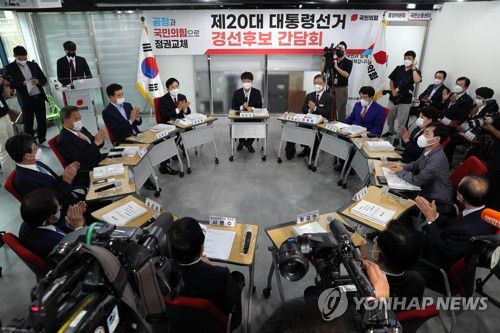 국민의힘 대권주자들은 이날 여의도 당사에서 열린 경선후보 간담회에 참석해 저마다 정권교체 최선봉에 서겠다는 의지를 드러냈다.