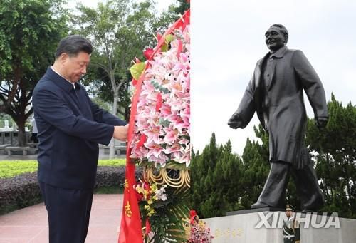 2020년 10월 선전에서 덩샤오핑 동상에 헌화하는 시진핑 주석 |